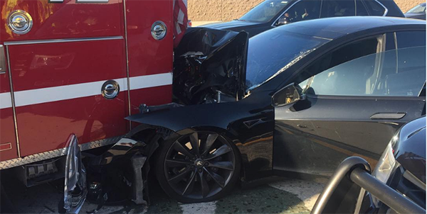 Trong khoảng thời gian xao nhãng đó, người lái đã không nhìn thấy chiếc xe cứu hoả đang đỗ ngay đằng trước, chiếc Tesla Model S không được trang bị hệ thống radar, camera và cảm biến đồng thời không hề có động thái tránh xe cứu hoả, không kích hoạt hệ thống phanh.