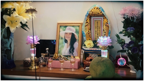 Bàn thờ và di ảnh chị Hương vợ anh Thân. |
