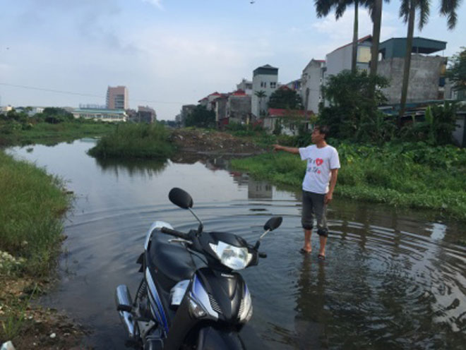 Dự án đường vào Khu công nghiệp Nam Thăng Long tiến độ chậm trễ, gây ngập úng. |