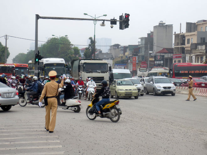 Lực lượng CSGT, Công an TP Hà Nội tập trung phân luồng từ xa trong dịp nghỉ lễ 30-4, 1-5.