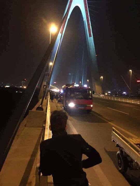 Gần 21h đêm 5-2, hai người đàn ông đi xe máy trên cầu Nhật Tân, Hà Nội, sau đó dừng đỗ bên mép cầu. "Một người bước qua lan can cầu tuy nhiên đã không may trượt chân rồi ngã xuống sông Hồng", một nhân chứng cho hay.