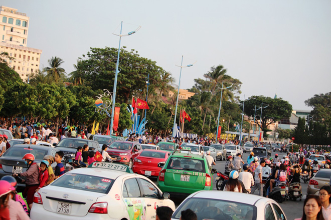 Các tuyến đường Thùy Vân, Ba Cu, Nguyễn Văn Trỗi luôn đông kín người. Nhiều ngã ba bị tắc cục bộ như vòng xoay dầu khí, khu vực Bãi Trước, trước cổng vào cửa bán vé đi Hồ Mây. Đường 3-2, chiều 30, sáng 31- 1, hàng ngàn xe máy biển số Tp Hồ Chí Minh, Bình Dương, Đồng Nai đổ về Vũng Tàu.