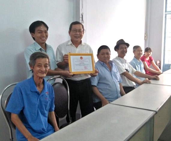 | Đại diện UBND TP Sóc Trăng, tặng Giấy khen cho ông Hà Chí Quí. |