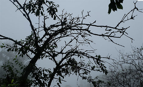 | Những cây mận ngày hôm trước còn sum suê trĩu quả, nay trơ cành trụi lá. Chính quyền địa phương đang thống kê thiệt hại. |