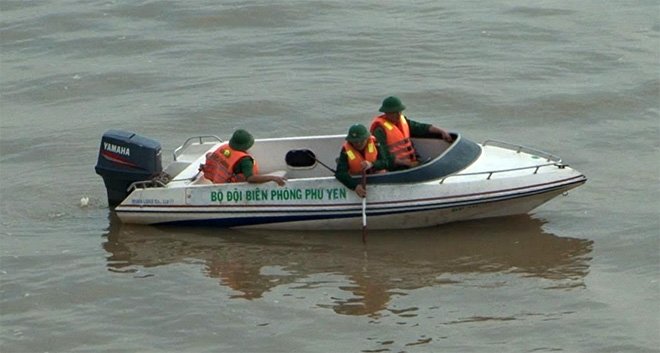 | CBCS Hải đội 2 – Bộ đội biên phòng Phú Yên tìm kiếm dấu tích Trương Đức Anh Huy. |