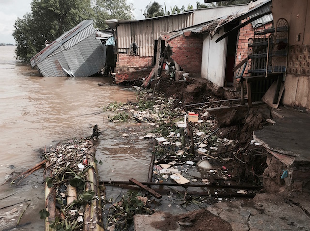 Tương tự, hộ ông Nguyễn Bé Ba (63 tuổi) cũng có nhà bị sụp xuống sông. “Mọi chuyện đến quá nhanh, bà con chỉ hô hoán nhau thoát thân và đưa được tài sản nào ra ngoài thì đưa”, ông Ba nói. Do ảnh hưởng bởi sạt lở, nhiều dân dân phải che bạt tạm bờ, sống trên bờ gần khu vực sạt lở, chờ chính quyền địa phương có hướng khắc phục và hỗ trợ đến nơi ở mới.
