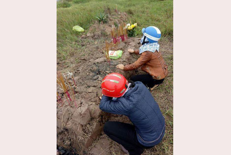 | Những người nhận là người thân cô gái mất tích tìm tới mộ thắp hương, khóc lóc khi biết người dân trong xã đã đưa thi thể nạn nhân đi mai táng tại nghĩa trang. |