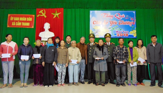 Sáng 6-2, Trung tướng Lê Ngọc Nam, nguyên Phó Tổng cục trưởng Tổng cục Chính trị CAND, cùng đoàn công tác xã hội từ thiện Báo CAND Văn phòng Thường trú miền Trung và nhà tài trợ - Công ty TNHH Kinh doanh thương mại và xây dựng Đại Phúc (trụ sở tại quận Cầu Giấy, Hà Nội) - đã về xã Cẩm Thanh, TP Hội An, tỉnh Quảng Nam để trao tặng 100 suất quà Tết (500.000 đồng tiền mặt/ suất) cho hộ gia đình chính sách và hộ khó khăn địa phương. Tham dự buổi lễ trao quà còn có ông Kiều Cư, Bí thư Thành ủy TP Hội An.