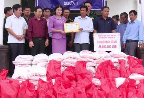 Hỗ trợ người dân nước bạn Lào bị hỏa hoạn.