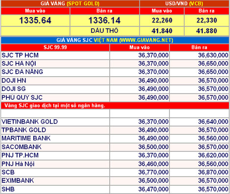 Tính đến 9h sáng hôm nay, ngày 8-8, giá vàng giao ngay đứng mức $1.336/oz.
