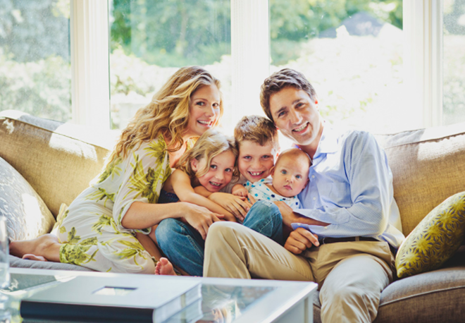 2. Ở độ tuổi 46, ông Trudeau đã có một gia đình hạnh phúc với vợ là bà Sophie Gregoire cùng 3 đứa con kháu khỉnh là Xavier 10 tuổi, Ella-Grace 7 tuổi và Hadrien 3 tuổi. Ông và vợ vốn biết nhau từ nhỏ, nhưng phải đến năm 2003, trong một bữa tiệc gây quỹ từ thiện, cả hai mới nảy sinh tình cảm. Khi đó Gregoire là một phóng viên ngành giải trí. Đến tháng 5-2005, hai người kết hôn. Ảnh: Maude Chauvin