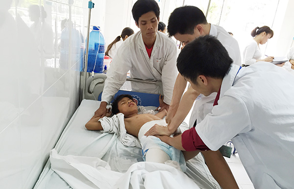 | Một ca cấp cứu bệnh nhân bị tai nạn giao thông ở BV Việt Đức. |