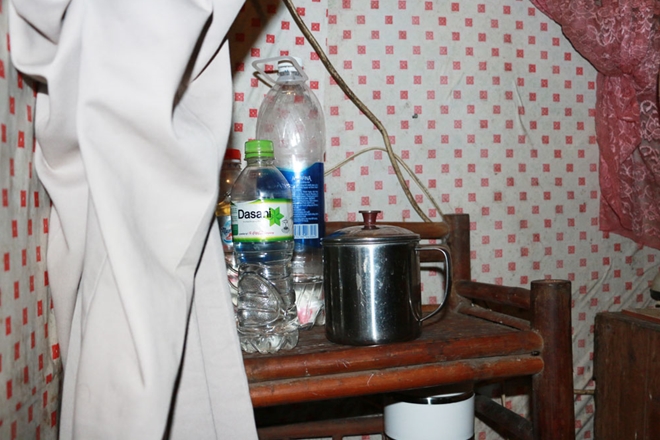 | Căn phòng của bác Đính đủ kê một chiếc gường và vài vật dụng khác. Gần bệnh viện, hơn nữa cuối tuần lại về quê, nên bác Đính chọn nhà trọ này dù biết không thể tiện nghi bằng như nơi khác. |