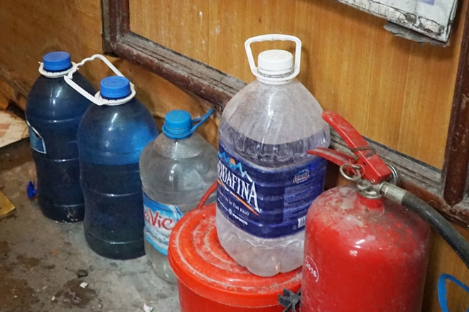 | Nước sinh hoạt được mua đựng trong các chai nhựa lớn để "tiện bề" sử dụng trong bệnh viện. |