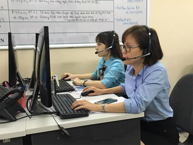 | Nhân viên tổng đài tiếp nhận các cuộc gọi đăng ký khám. |