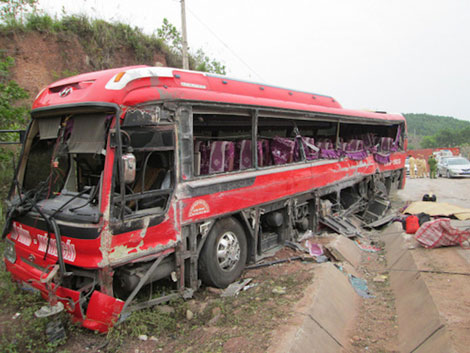 | Hiện trường vụ tai nạn giao thông khiến 6 người thiệt mạng. |