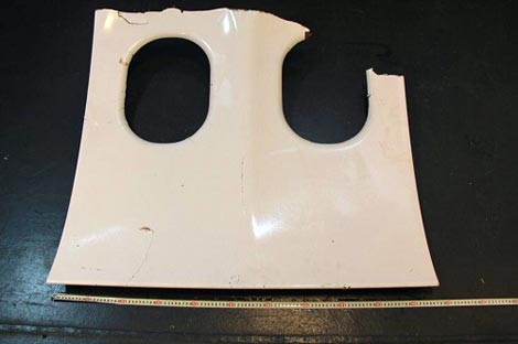 Mặt trước một mảnh vỡ, giống với các ô cửa sổ máy bay, được Hải quân Singapore tìm thấy. Ảnh: Reuters/Singapore Ministry of Defence.
