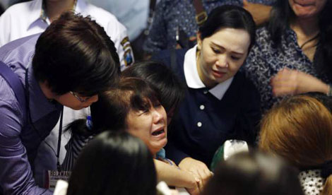 | Nỗi đau khôn nguôi của thân nhân hành khách trên chuyến bay QZ8501 khi được thông báo máy bay đã rơi xuống biển. |