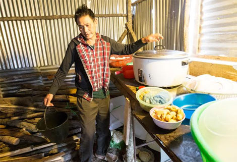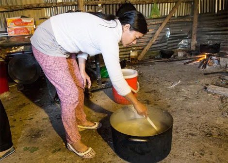 | Can thức ăn được các công nhân chuyển từ lán bếp vào đường hầm cho các nạn nhân. |