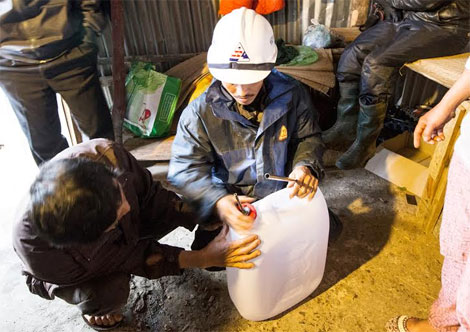 15h30’ ngày 19/12. Bữa cháo gà của các nạn nhân đã được chuẩn bị chu đáo theo đúng lịch trình. May mắn thay, họ đã không phải tiếp tục dùng mũ bảo hộ để hứng cháo được truyền qua đường ống nữa.