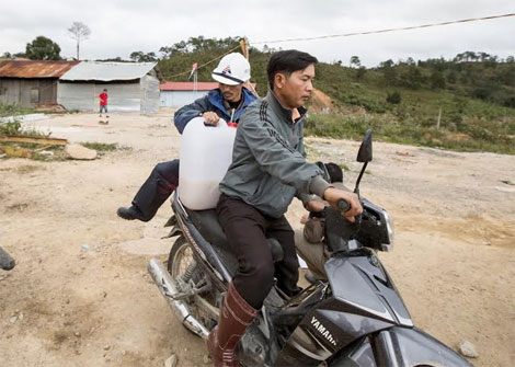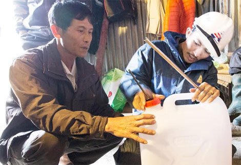 | Tất cả được trút vào một can nhựa dung tích 5 lít. |
