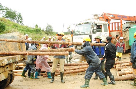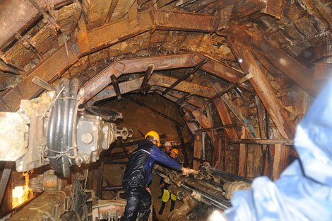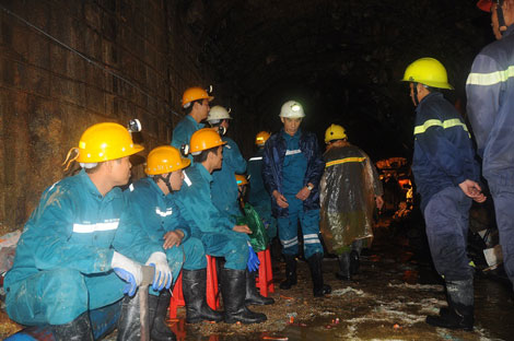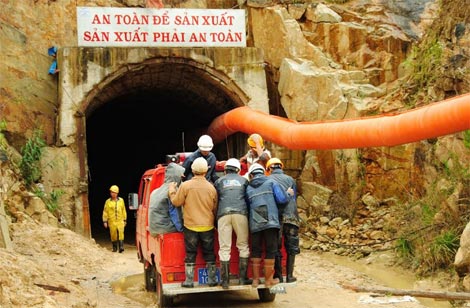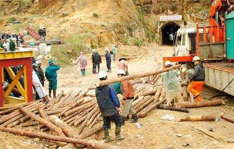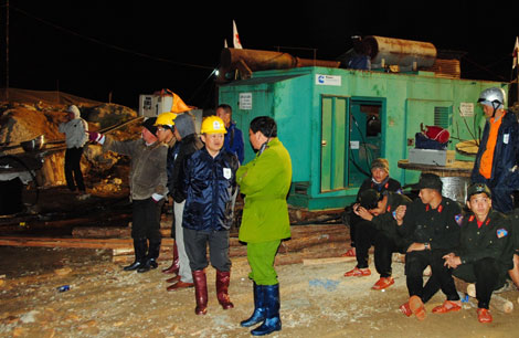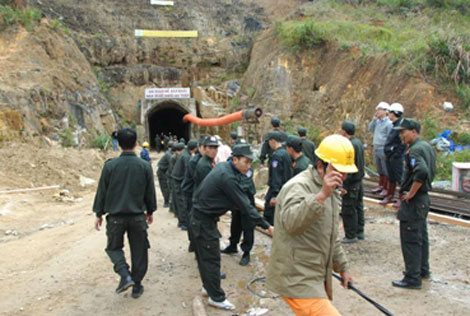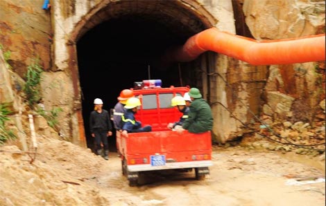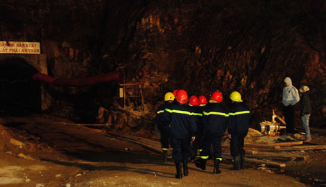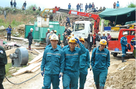 | Công nhân mỏ Quảng Ninh được đưa vào hiện trường. |