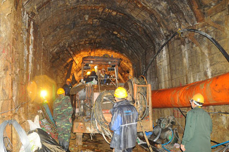 Thiếu tướng Bùi Văn Sơn- Giám đốc Công an tỉnh Lâm Đồng cho biết, đã sử dụng máy khoan đá chuyên dụng khoan mũi rộng đường kính 20cm từ phía hạ lưu đường hầm. Công việc này đang gặp điều kiện tương đối thuận lợi, trong vòng 2 tiếng đã khoan được 20m, nếu vẫn đạt tiến độ như hiện nay, không gặp phải những khối đá lớn, trong vòng hơn 4 tiếng nữa mũi khoan này sẽ vươn tới vị trí các nạn nhân đang bị mắc kẹt. Trong khi đó, tại cửa phía trước của đường hầm, nước đang được hút ra nhưng với khối lượng đạt được không cao.