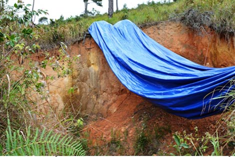 | Khu vực bề mặt xác định bị sụp trên quả đồi. |