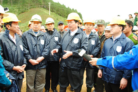 | Bộ trưởng Vũ Huy Hoàng và Trịnh Đình Dũng chỉ đạo công tác giải cứu các nạn nhân. |