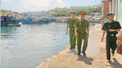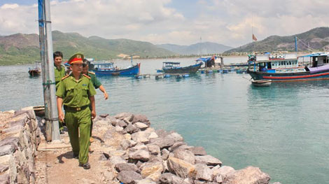 | Công an phường Vĩnh Nguyên, TP Nha Trang và Bộ đội biên phòng Khánh Hòa ra đảo Bích Đầm kiểm tra, hướng dẫn ngư dân neo đậu tàu thuyền tránh bão. |