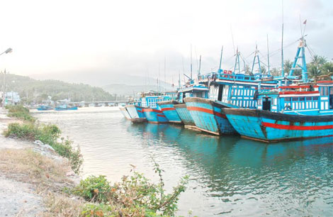 | Tàu thuyền ngư dân Nam Trung bộ di chuyển vào sông neo đậu tránh bão. |
