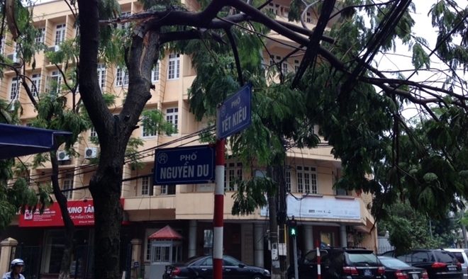 Tuy nhiên, ngay giữa Thủ đô - tại góc ngã tư phố Nguyễn Du cắt phố Yết Kiêu, ở vị trí số nhà , một cây xanh bị gãy ngang thân. Nửa trên cây đổ đè lên mớ dây điện, dây cáp viễn thông vắt ngang phố Nguyễn Du.