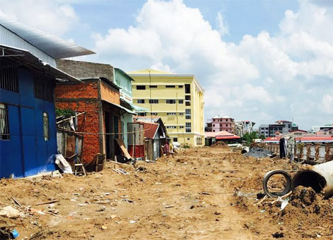 | Phần đất thuộc nhánh rạch Khai Luông bị bao chiếm, san lấp xây dựng công trình tạm trái phép. |
