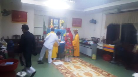 | Nơi diễn ra hoạt động cúng khấn, mê tín dị đoan là phòng họp chính cũng là phòng truyền thống của đơn vị. |