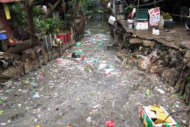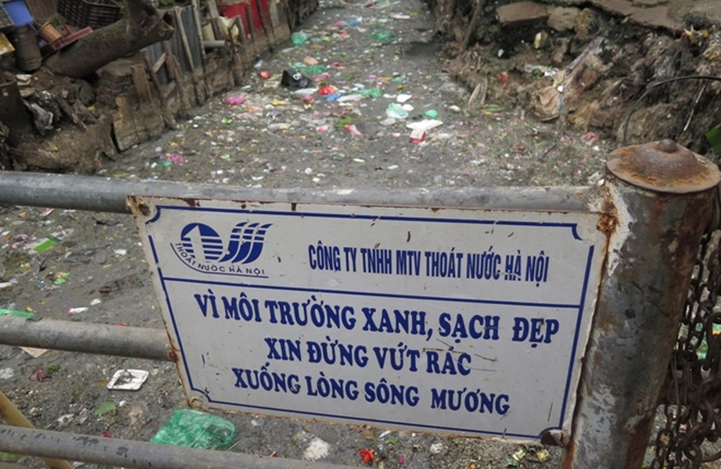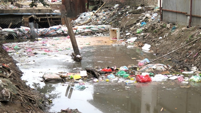 Nước thải ra mương chủ yếu là nước thải sinh hoạt cộng với rác do người dân xả trực tiếp xuống. |