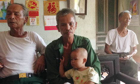 | Ông Đỗ Văn Truyền (ngồi giữa) lo lắng cho sức khỏe của vợ. |