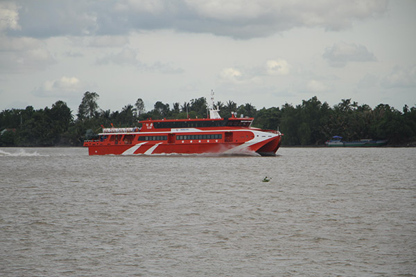 | Tàu cao tốc chạy trên sông Hậu. |