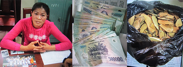 Đến 15h cùng ngày, khi Sáng đang nhận tiền của bà H. thì bị lực lượng Công an bắt giữ quả tang. Tang vật thu giữ gồm 26 triệu đồng tiền mặt, 1 xe máy biển kiểm soát 20N7-67..., 2 điện thoại di động và 1 túi nilon bên trong chứa 0,5 kg gỗ thải mỏng phơi khô mà đối tượng Sáng dùng để làm công cụ lừa đảo.