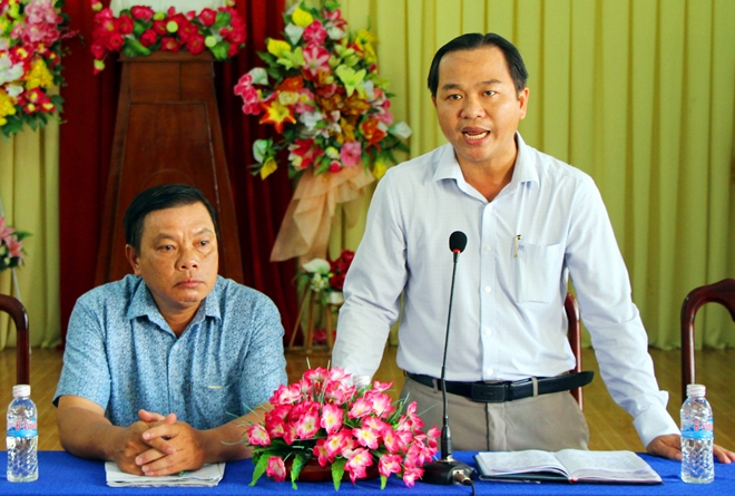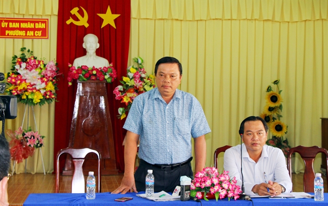 | Ông Nguyễn Văn Tấn, Chủ tịch UBND phường An Cư thông tin vụ việc tại buổi họp báo. |