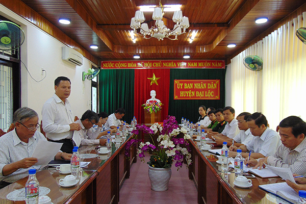 | Ông Lê Văn Thanh, Phó Chủ tịch UBND tỉnh Quảng Nam làm việc với lãnh đạo chủ chốt huyện Đại Lộc. |