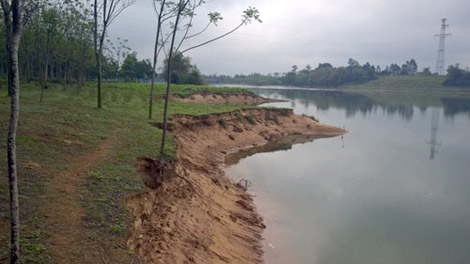 | Nhiều diện tích hoa màu của người dân đã bị Sạt lở ngay cạnh bãi tập kết cát trái phép của ông Truyền. |