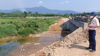 Cụ thể, nhiều đoạn đã được đơn vị thi công vá lại nham nhở, nhiều đoạn đường có hiện tượng phình lún, hư hỏng nặng, mặt đường sần sùi trồi đá dăm lên trên, lề đường sử dụng vận liệu có dấu hiệu không đúng thiết kế phê duyệt, tại một số cầu, cống, tràn thi công kém thẩm mỹ....