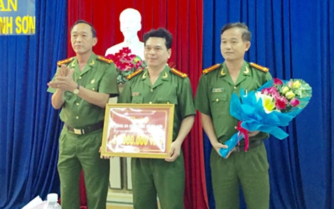 | Đại tá Trần Mưu- Phó Giám đốc Công an Đà Nẵng trao thưởng cho Công an quận Ngũ Hành Sơn. |