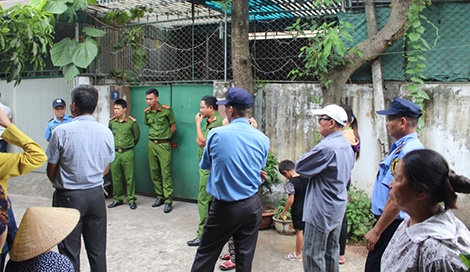 | Lực lượng Công an làm nhiệm vụ bảo vệ tại nhà ông Hương để cơ quan chức năng tiến hành các bước pháp y. |