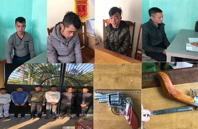 | 10 đối tượng gây rối TTCC và 2 khẩu sung tự chế bắn đạn ria của Phạm Văn Minh và Nguyễn Văn Cường. |