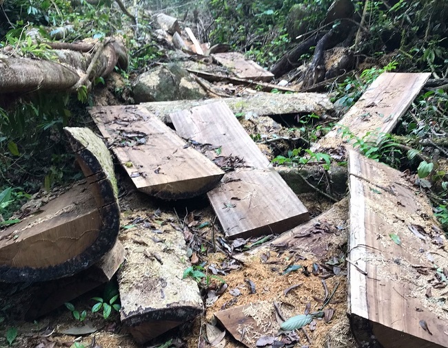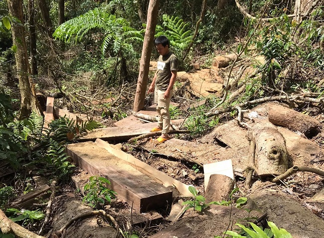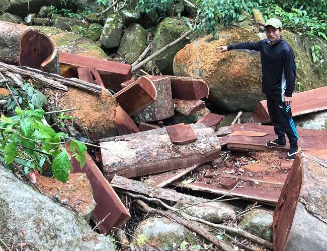 | Hiện trường vụ khai thác gỗ trái pháp luật |