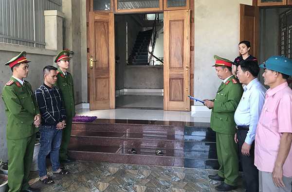 | Tiến hành khám xét nơi ở của Ngô Văn Phú. |