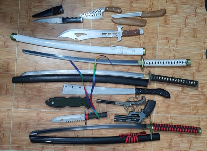 Tàng trữ “hàng đá” cùng nhiều hung khí nguy hiểm