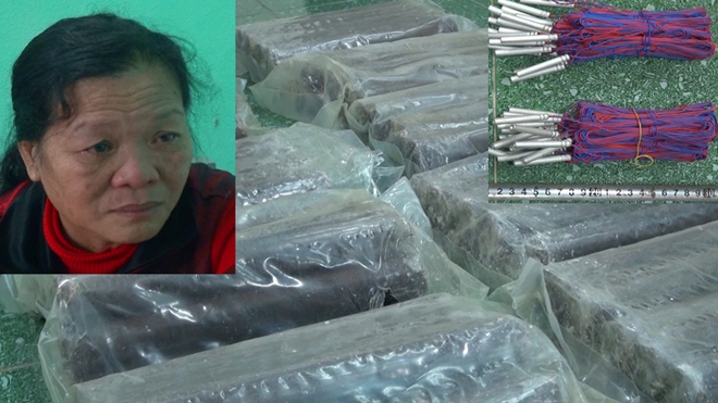 Theo đó, sau một thời gian theo dõi và lập án đấu tranh, khoảng 13h30' ngày 7-1, tại khu vực bến phà xã Hoằng Yến, huyện Hoằng Hoá, Phòng An ninh điều tra Công an tỉnh Thanh Hóa đã phát hiện, bắt quả tang đối tượng Đồng Thị Hà (58 tuổi), ở xã Hoằng Phụ, huyện Hoằng Hoá đang vận chuyển 100 thỏi (có trọng lượng 20kg) thuốc nổ và 50 kíp nổ đi tiêu thụ.