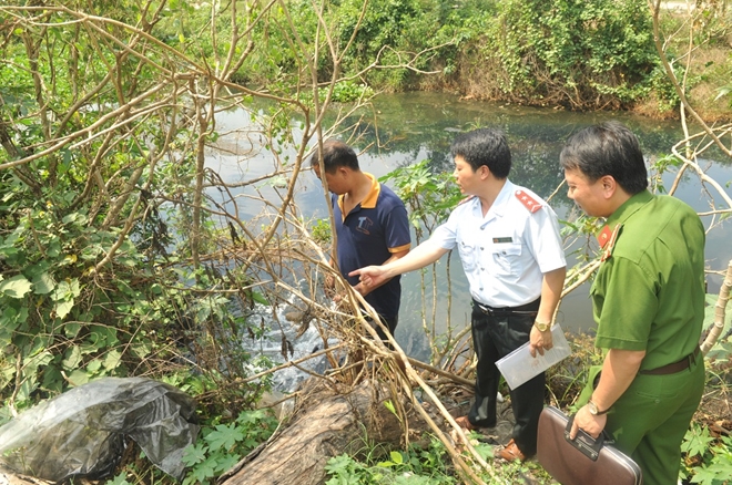 | Đoàn công tác liên ngành kiểm tra thực tế khu vực xả thải. |